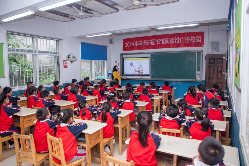 流动服务车不仅将海量图书送进校园,也将丰富多彩的文化活动带到孩子们的身边。图书借阅后,株洲市图书馆志愿者老师为孩子们带来一堂有趣的阅读指导课,游戏破冰、话题导入、知识竞答等环节激发了孩子们对知识的热情和渴望。
